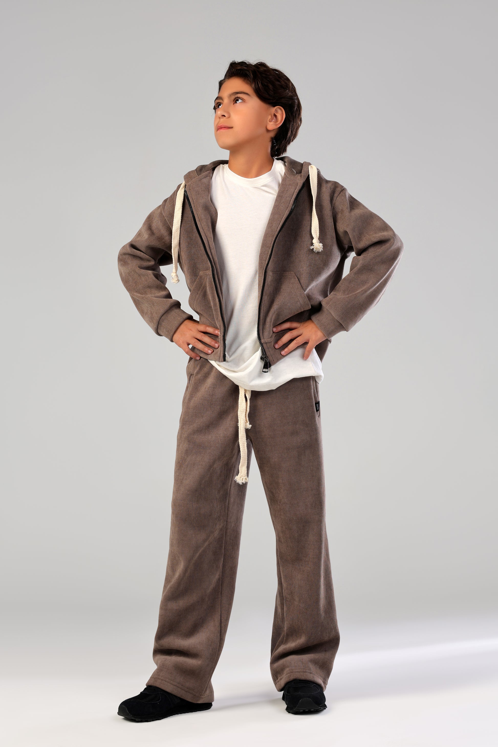Ultra-soft, effortlessly relaxed, and seriously stylish—our Kids' Luxe Tracksuit Set is designed for ultimate comfort and cool, casual vibes. Crafted from a plush, fine-wale corduroy fabric and fully lined with warm fleece, this matching two-piece set offers a cozy, fuzzy feel that's perfect for all-day play or relaxed lounging in cooler weather.
