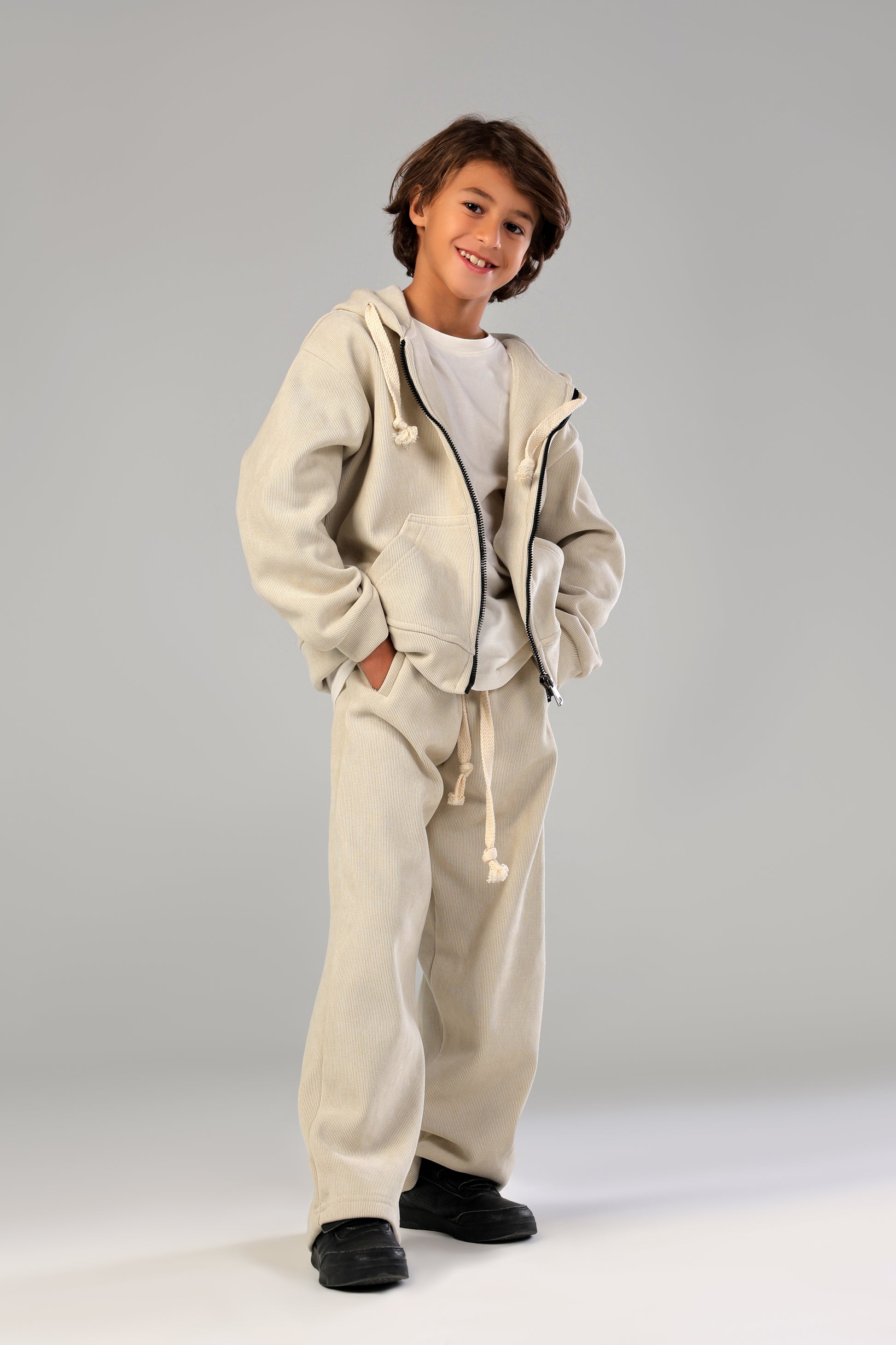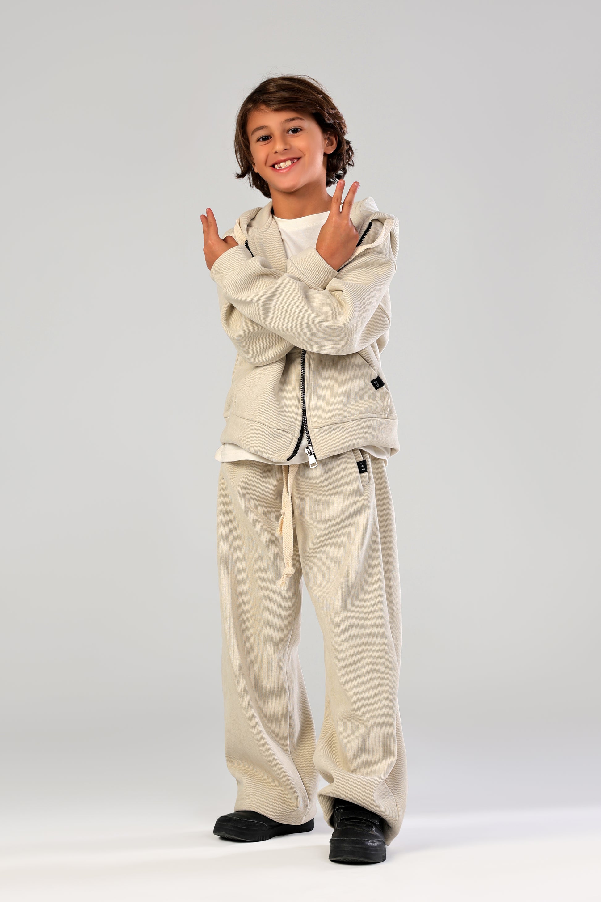 Ultra-soft, effortlessly relaxed, and seriously stylish—our Kids' Luxe Tracksuit Set is designed for ultimate comfort and cool, casual vibes. Crafted from a plush, fine-wale corduroy fabric and fully lined with warm fleece, this matching two-piece set offers a cozy, fuzzy feel that's perfect for all-day play or relaxed lounging in cooler weather.